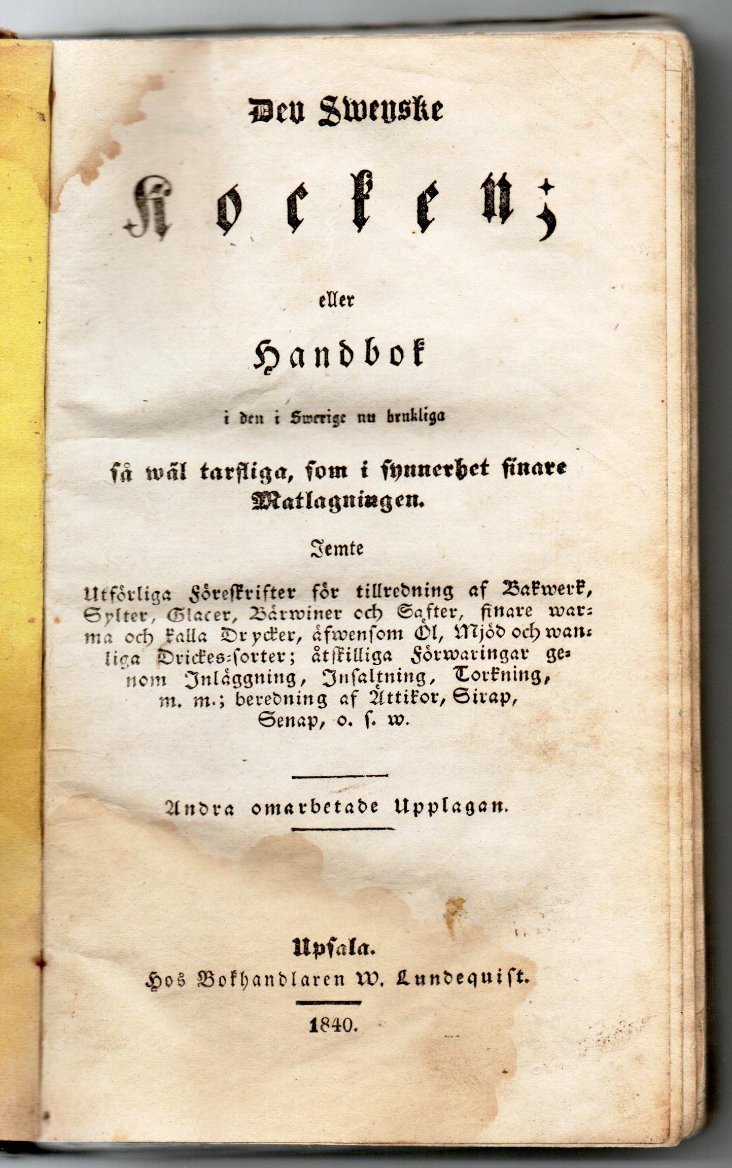 Mäskkaret bör hafva dubbla bottnar, den öfra lös , genomborrad med flera smärre hål, och hvilande på en list, 3 tum högt från nedra botten därpå lägges ett lag med i hett vatten skållad halm, och häröfver en hårduk eller ett stycke flanell. Mellan bottnarna är en tapp, hvarigenom vörten urtappas i e3ett lägre stående kar, som bör hållas betäckt. — När mäskningens skall företagas , så slås gröpet i mäskkaret och genomfuktas med ljumt vatten, som efterhand tillsättes och omblandas dervid väl, hvilket kallas att systa; eller ock ihälles en viss qvantitet vatten först, och gröpet tillsättes efterhand, under noggrann omrörning, så att inga degklimpar bilda sig. Om man antager ovan anförda proportioner, nemligen att 160 mått öl önskas af 100 mått gröpe(det blir då ett mycket starkt öl), så är den vattenqvantitet, som först bör ihällas i mäskkaret, omkring 65 mått, upphettad till omkring 60 om sommaren eller 75 om vintern. Sedan gröpet blifvit arbetadt i detta vatten, under nära en timma, så slår man åter i mäskkaret 40 mått vatten, som i bryggkitteln (vanligen en murad panna under hvilken eldas) blifvit upphettadt till 96 ; hvarefter man åter börjar noggrannt omröra, tills hela blandningen blifvit likformig. Man betäcker nu mäskkaret, att värman som nu är omkring 75 må qvarhållas deri, och lemnar det orört halfannan timme, eller längre, om maltet är svagt torkadt. Derefter urtappar man den under tiden bildade vörten i et lägre stående vörtkaret; men om den utflytande vörten är grumlig, så slås den tillbaka i mäskkaret tills den rinner klar. När detta är gjort, fyller man åter i mäskkaret 75 mått vatten, som emellertid blifvit i bryggpannan upphettadt till 96 och omarbetar massan liksom förut, hvarefter man åter betäcker mäsket, som nu har en värma mellan 75 och 79 Sedan det så stått någon tid, aftappar man den nya vörten i samma kar som den förra och påfyller för sista gången mäskkaret med till 96 upphettadt vatten, och omarbetar gröpet deruti. Under tiden slår man all vörten i den nu från vatten lediga bryggpannan och sätter den i kokning. När tredje mäskblandningen stått omkring en half timma öfwertäckt i karet, aftappas äfven den deraf utdragna vörten, och slås i den redan kokande bryggpannan, dock efter hand så att kokningen derigenom ej stannar. Gröpet är nu så tömdt på sockerhalt, att den vört, som den ytterligare kan gifva, icke mer duger till öl, men kan användas till svagdricka.